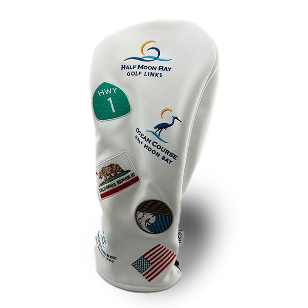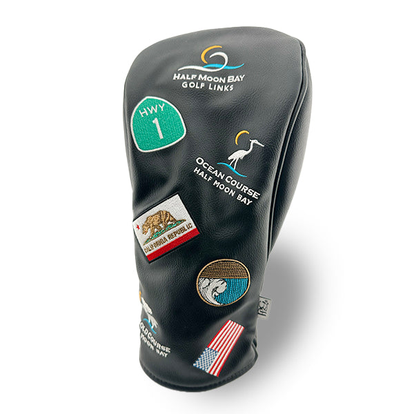 Heavy duty headcover from PRG with embroidered logos from Half Moon Bay Golf Links, the coastal highway, California and the USA flag. Fleece lined.