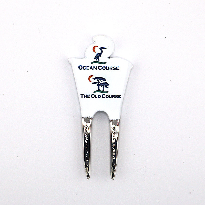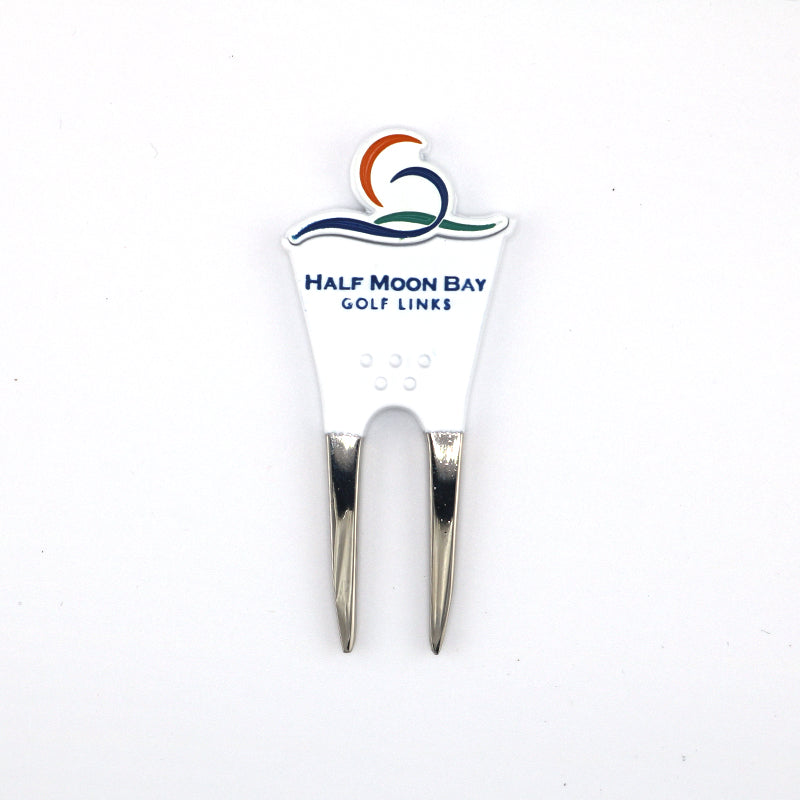 Pacific Golf Divot Tool with Half Moon Bay Golf Links logo on the front, Ocean Course and Old Course logo on the reverse. A removable magnetic ball marker in the shape of the Half Moon Bay Golf Links wave logo makes for a distinctive touch!