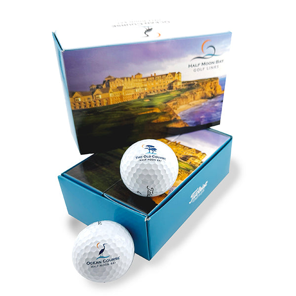 This special edition box features a beautiful image of the 18th hole on the Old Course. Inside are two sleeves of ProV1 golf balls. One sleeve with the Old Course logo. One sleeve with the Ocean Course logo.